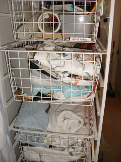 Jag har ett trådställ i förrådet som jag egentligen inte vet vad det innehåller. Allt som jag inte (för ögonblicket) vill se hamnar här. Nu ska jag ta itu och sortera.